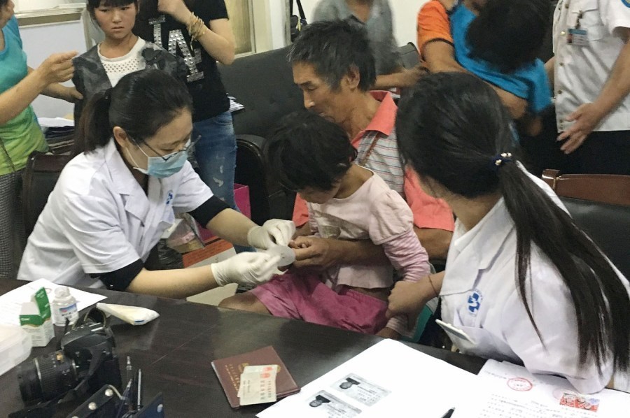 2016年6月14日,这一家流浪的老少进行亲子鉴定、司法鉴定,以作为将来申报户口和上学的重要依据。图为4名孩子和父母接受亲子鉴定。