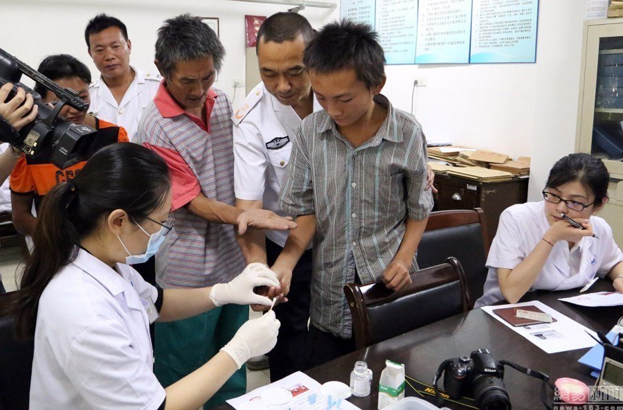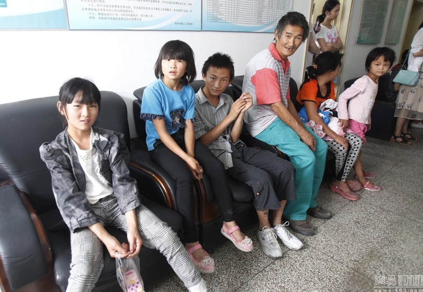 巡防队员尝试求助媒体,希望借助大家的力量,帮助孩子们实现上学的梦想。近日,郑州一医院决定免费为他们提供户籍类司法亲子鉴定,帮助四兄妹早日走进学校,得到应有的教育。图为4名孩子和父母接受亲子鉴定。